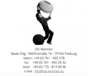 Telefon 0761-405578, e-mail info@ide-wohnen.eu